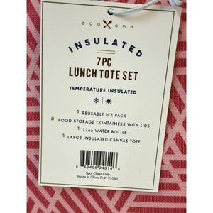 Eco One Insulated 7 pc Canvas Lunch Tote Bag Red Multi Geometric Pattern