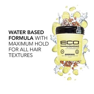 Eco Style gel with black castor and flaxseed oil. Includes two gel boosters for strand restore and color brilliance.