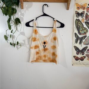 Eco printed cropped cream tank top dyed with real orange cosmo flowers