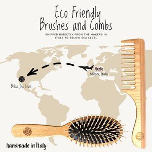 Our wooden brush is pretty amazing! It has a pure, natural rubber cushion and turned hornbeam pins. The brush is sealed with linseed oil and vegetable carnauba wax, making it waterproof. It was handmade in Italy by TEK. (TEK is well known for their high quality craftsmanship and the special attention they give to environment protection.)