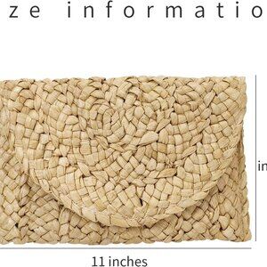 Features: Crafted from 100% natural corn husk straw with a woven envelope design, this boho chic bag adds a relaxed, beachy vibe to any summer outfit. The spacious interior (11x7 inches) comfortably fits your phone, lipstick, keys, and wallet. Metal magnetic closure for easy access and security. Lightweight and easy to carry all day, making it ideal for beach trips, vacations, and casual gatherings.
