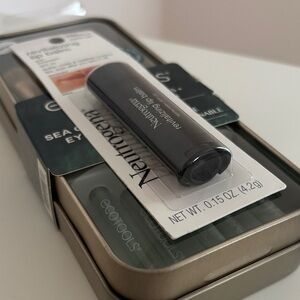 EcoTools set includes five eye brushes in a sleek tin. Comes with Neutrogena lip balm for added care.