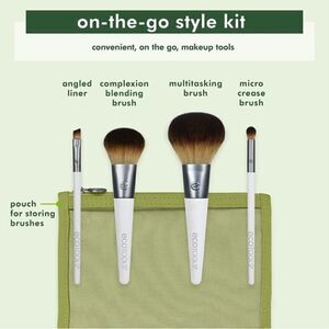 Contour and foundation brushes Eye crease and angled brush Comes in green carrying case
