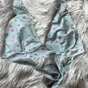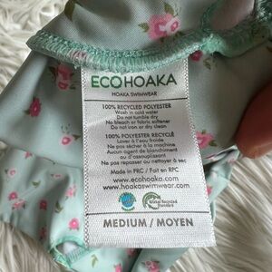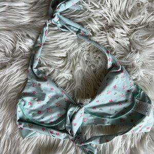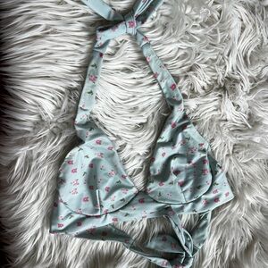 Ecohoaka bikini, sustainable bikini top, eco swimwear, recycled swim top, floral halter bikini, blue floral bikini top, tie-back swimsuit, adjustable swim top, women’s medium swimwear, pastel swimwear, beachwear, cute bikini for summer, modest bikini top, trendy swimwear, floral print halter top, cottagecore swim top, lightweight vacation top, ethical fashion swimwear