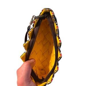 The Ecoist M&M Candy Wrapper Handbag is a stylish and sustainable handbag designed for women. Made from vinyl with a colorful exterior and a red lining, this pouch-style handbag features a zip closure for convenience. The handbag also includes a matching wristlet accessory, making it a versatile and practical choice for everyday use. In EUC see pics for confirmation of condition and measurements.