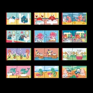 With these 12 Saving Water mini puzzles, children learn about the importance of water, and how to conserve this precious resource. The pieces feature colored edges and self-correcting joints that help players to match them. On the red-edged pieces, adorable sea creatures show how to waste water in everyday life, but on the green-edged pieces, they show ways that children can save water!