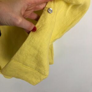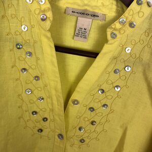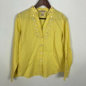 E-col-o-gie Yellow Embroidered Linen Button Front Long Sleeve Shirt Women Medium