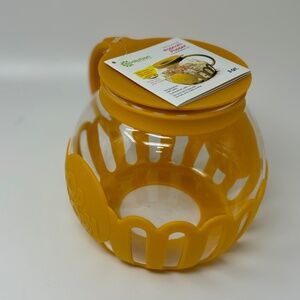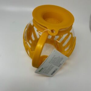 3 quart - large size - clear glass with yellow lid, handle, and base