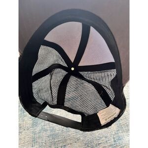 Black and gray hat with a pink hibiscus with peach colored leaf design from Econscious. Black mesh back with snapback closure.