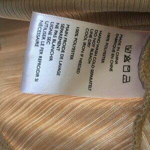 Off-the-shoulder flutter-sleeve top by boho brand Ecote. In a stretchy variegated ribbed knit with a chic swing fit featuring all over shimmer and short flutter-sleeves, from Urban Outfitters. Polyester. Beautiful creamy gold / sparkly champagne color.
