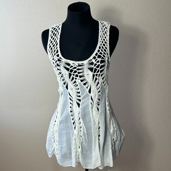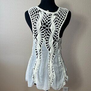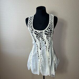 Ecoté Cream Lace Crochet Boho Tunic Top Size L