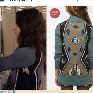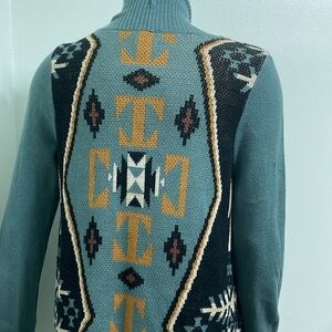Ecoté Urban Outfitters Blue Intarsia Patterned Shawl Cardigan - Size M