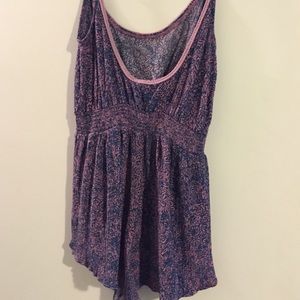Romper with side slits that are discrete but add a fun flair. High waisted, can wear with a bralette, no bra, or with pastees. Very flattering and creates a cute figure on anyone! ****only worn once****