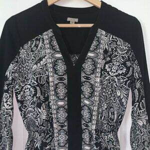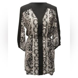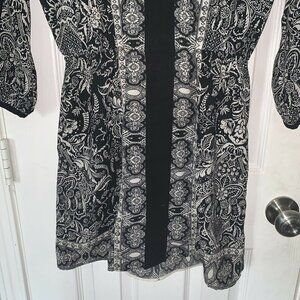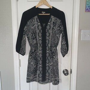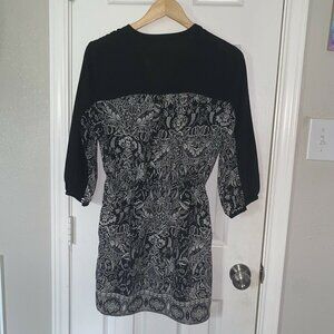 Ecote Anthropologie Black White Floral Boho Peasant 3/4 Sleeve Dress Small