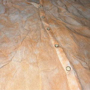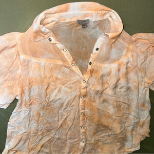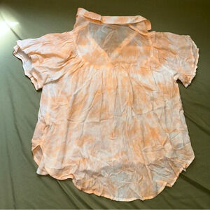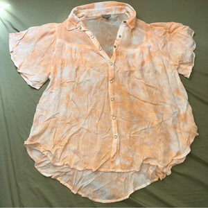 Ecote Anthropologie Blouse Gauze Sheer Peach White Short Flutter Sleeve Button Down Collared