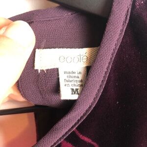 All over velvet top from Ecote, sold at Urban Outfitters. This top is an all over purple velvet with a pink floral print all over. It has a double v neck with a strap across the neckline on both sides. It has short dolman sleeves. Excellent condition. Approx measurements: Pit to pit: 24.5" Shoulder to hem: 20.5"