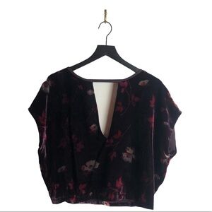 Ecote Athena Cut Out Purple Floral Velvet Top Med