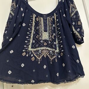 Ecote Blouse, Bohemian, Navy Blue, Off the Shoulder, Flowy, Medium