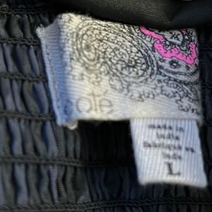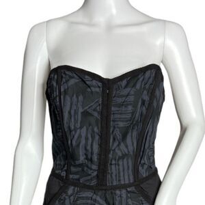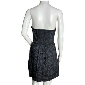Ecote Dress Women Large Blue Black Geometric Print Strapless Mini Neutral Casual