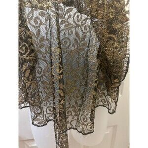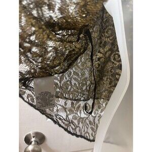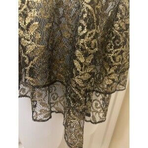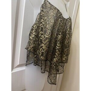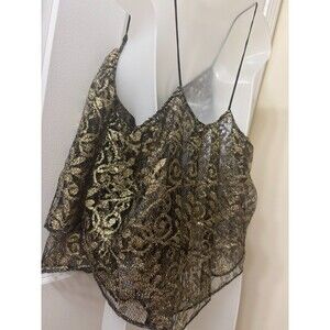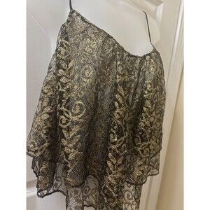 Urban Outfitters Ecote SHEER Asymmetric HEM Tank Top BLACK GOLD Lurex Frills SIZE L