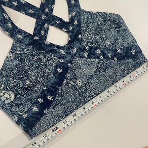 ~ Ecote Lg Boho Crop Top Blue Paisley Pattern Navy Adjustable Convertible Beachy