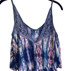 Ecote Tiered Tank Top Womens XS Tunic Boho Watercolor Layered Crochet