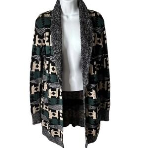 Ecote Urban Outfitters Intarsia Aztec Green Grey Sweater Shawl Open Cardigan S