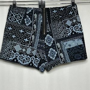 Ecote Urban Outfitters Jacquard Print Embroidered Shorts Blue Black Size 6