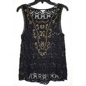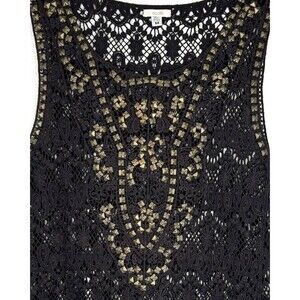 Ecote Urban Outfitters Women's Black Tank Top Cami Crochet Lace Studded Boho