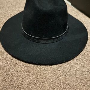 Black felt hat by Ecote sold through Urban Outfitter with black leather strap - one size