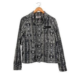 Ecote Women Cotton Lightweight Utility Bomber Jacket Sz S Black Gray Geometric