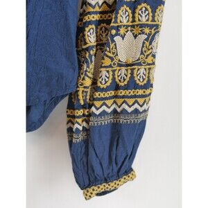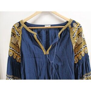 Ecote Womens Embroidered Blouse Top Blue Long‎ sleeve Size Small
