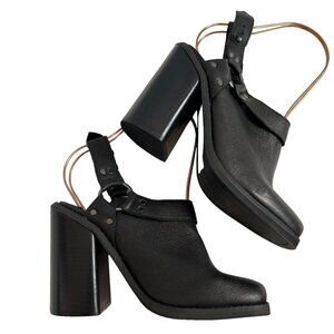 Ecote harness boots 8 ankle booties mules black leather block heel slingback
