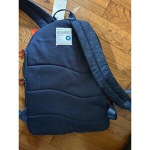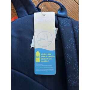 Ecotech Backpack - Blue - made from recycled plastic bottles - 17 inch - NWT . Orange and fluorescent yellow inside. Laptop section. Orange zipper tags. Recyclable.