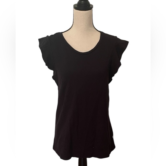 Ecothreads Black Ruffle Sleeve Organic Cotton Size Medium Women's Top EUC Soft
