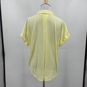 ECOTHREADS SHIRT WOMEN M MEDIUM YELLOW BUTTON UP POCKET SHORT SLEEVES DROPCUT