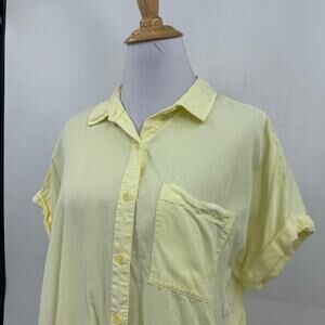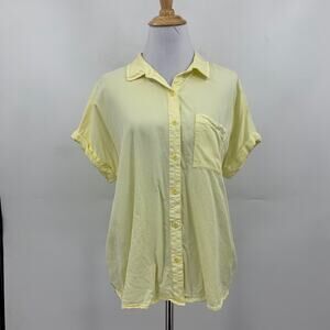 Ecothreads Shirt Women M Medium Yellow Button Up Pocket Short Sleeves Dropcut
