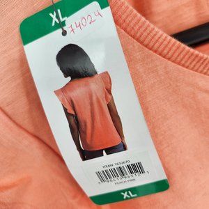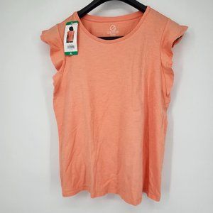 Ecothreads Women's Organic Cotton Short Flutter Sleeve Top Peach Pink XL NWT
