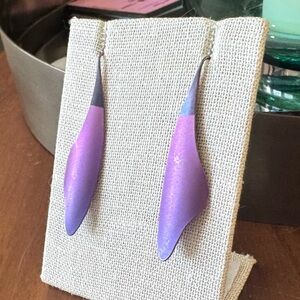 Keywords: purple earrings, shimmer earrings, lightweight dangle earrings, metal hook earrings, vintage earrings, purple statement jewelry, gift for her, boho chic earrings, festival earrings, versatile purple jewelry, retro earrings, purple fashion accessories.