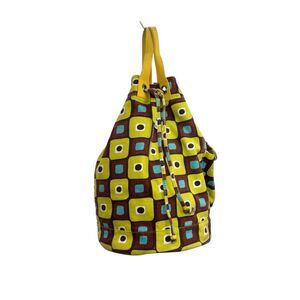 Ecototes Canvas Drawstring Bucket Backpack Geometric Print Yellow Brown