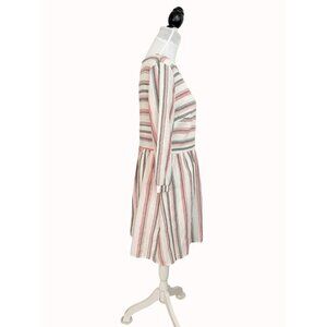 Babydoll Minimally Pleated Stripe Dress By Ecowish Size L Linen Blend Lightweight Short Length