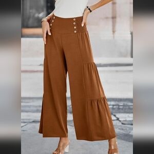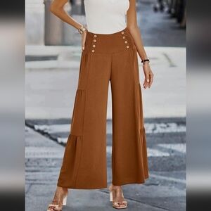 Elevate your style with these chic brown high-waisted wide-leg pants. Perfect for any occasion, they offer comfort and elegance.