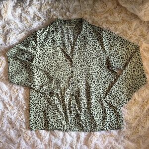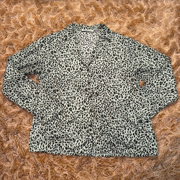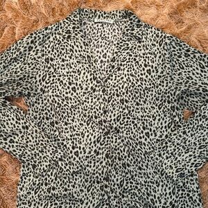 Ecowish Leopard Print Long Sleeve Blouse size L