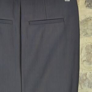 Features: Elastic waist, faux pockets, raw hem, rear slit, career wear