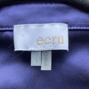 Luxurious deep blue fabric, 83% acetate, 17% poly washable on gentle cycle. Adds sophistication to your wardrobe. No stains, no worn areas, great condition. Size L on rage but more like M.