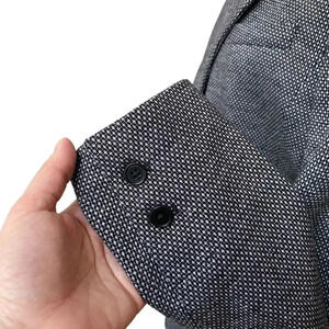Ecru Dotted Knit Boyfriend Blazer Size 12 Black White Rib Collar Jacket