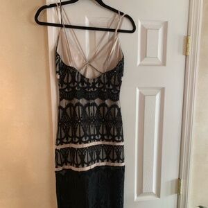 Ecru Lab BLACK & Nude Lace Split front Dress, Sz M