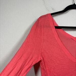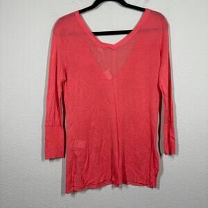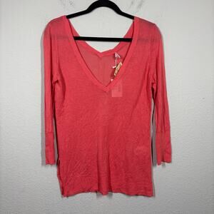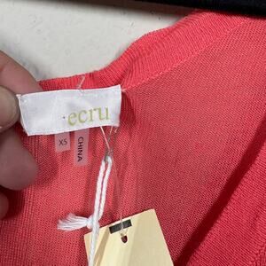 Ecru Size XS V Neck Lightweight Sweater Watermelon Red Cotton Blend Long Sleeves