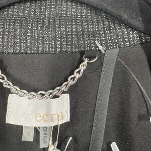 Ecru Womens Size 8 One Button Single Breasted Blazer Jacket Black Ivory Split Sleeves