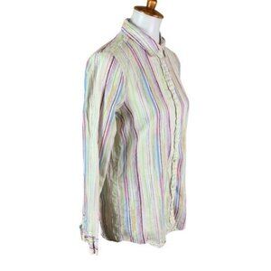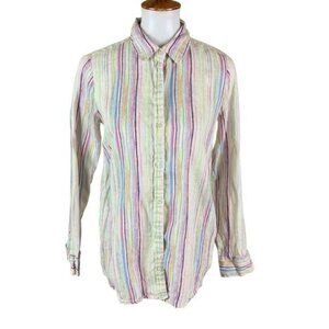 Ecru Womens Button Down Shirt Multicolor Striped Long Sleeve Casual Linen Small